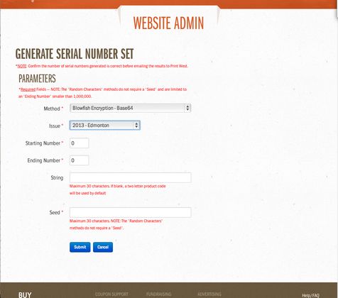 File manipulation - time-stamped PDF coupons for download, spreadsheet-based report generation, coupon artwork and coupon proof/final upload