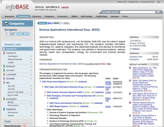 Taking the information the US Government publishes publicly on a yearly basis, placing it in to our database and linking that data to our custom modules tracking Contracts, Companies, Programs, and Customers we are able to provide the end user with a unique insight on what money is slated to go to what companies for what programs in the coming fiscal years.