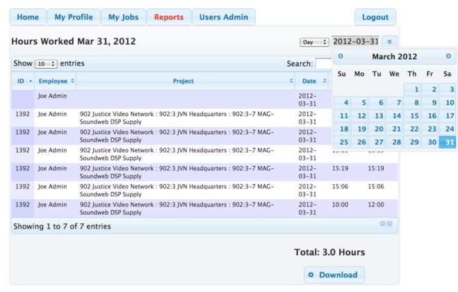 Time Tracking for Multiple Job Types, Multiple Employee types, Full Reporting in display and download for admins.