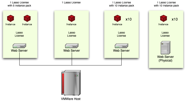 This diagram illustrates typical server + Lasso license + instance combinations: